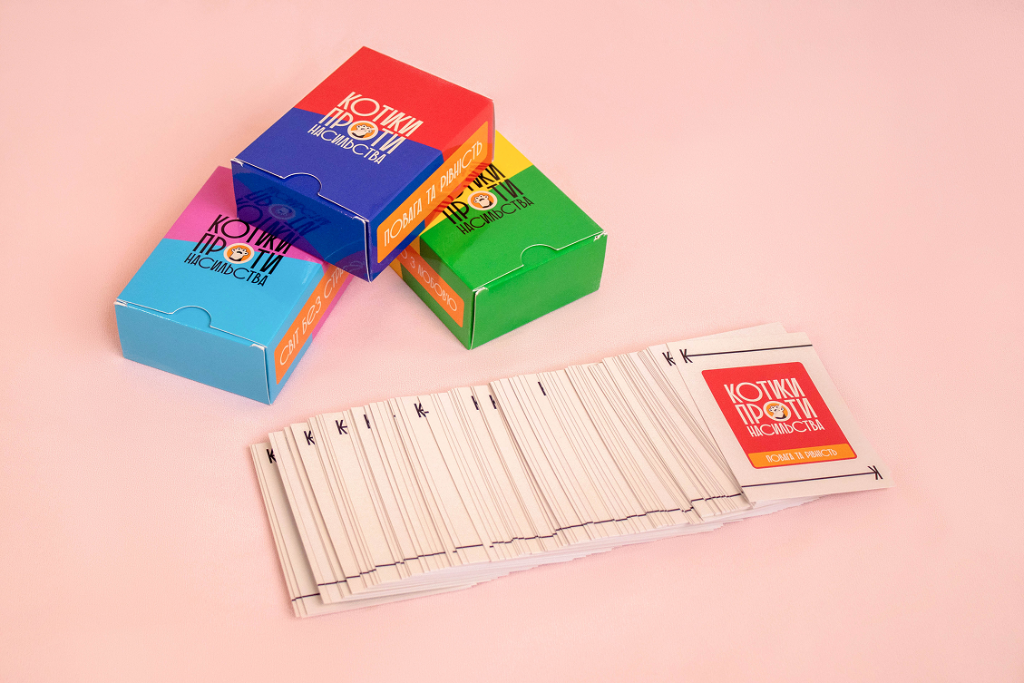 Цей успіх став поштовхом до наступного кроку — створення освітньої настільної гри. Так народилися «Котики проти насильства».
